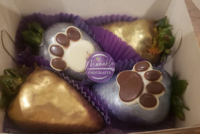 Letras en Brownie pintadas a mano con galletas de almendras,fresas achocolatadas ,al albaricoques, mini pies rellenos trufas de ganache de chocolate, entre otros